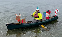 We arrived at the put-in at the end of Main Street next to Gardners Wharf Seafood at around 11:30 to decorate our boats and get our elf hats and candy canes from Pat. At around 12:10, Michelle walked down to the dock and the rest of us headed over to meet up with Santa for the paddle into town. I am always amazed at the crowd that gathers for this event.